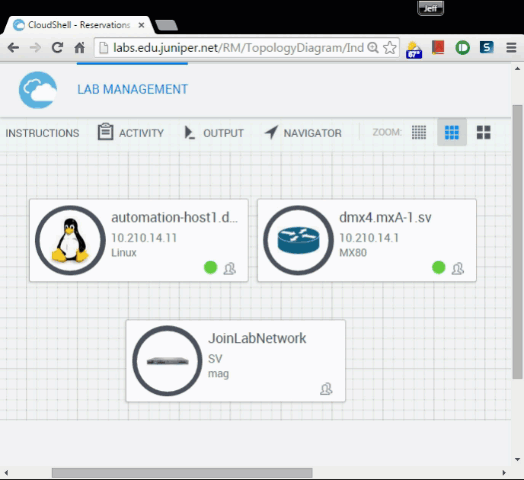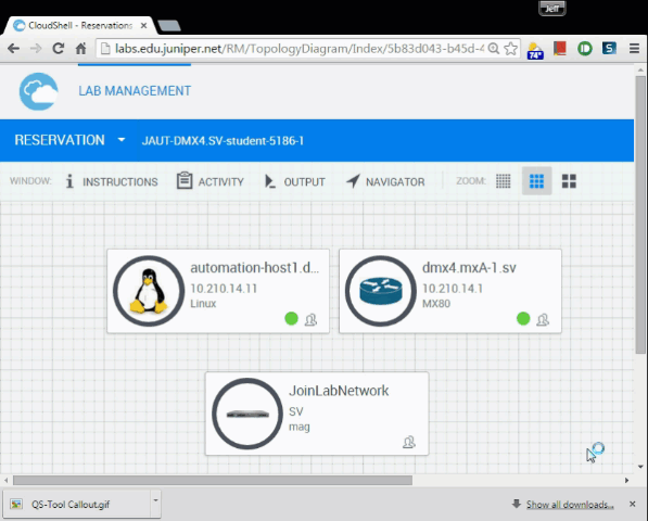 From the topology view, you will interact with the lab resources (hardware and virtual machines, joining via VPN, etc.). Hover over a device or resource to see the tool call-out.